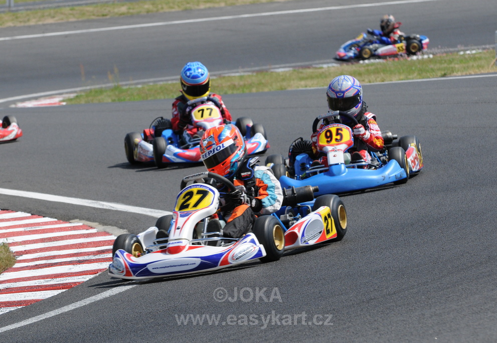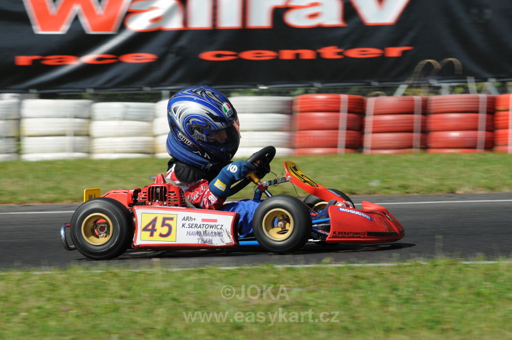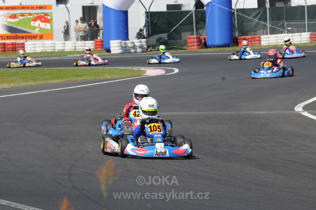 Český tým patřil v Polsku k nejpočetnějším – 23 jezdců a spolu s doprovody nás bylo téměř 70. Není divu, že Čechy bylo vidět a slyšet!! Děti předváděly na trati nádherné souboje a je těžké takový závod hodnotit a na nikoho nezapomenout. Nejblíže stupňům vítězů byli Dominik Javůrek v EASY60 (4.místo) a Pavel Srdínko v EASY100 (5.místo). Oba jezdili ve finále na medailových pozicích, ale v závěru jim chybělo trochu štěstí. Jakub Roubíček vybojoval druhé místo ve finále „B“ a oceněni s ním byli také Jindra Vohnout (5.místo) a Jáchym Galáš (6.místo). Ani ostatní naši se rozhodně neztratili a vodili za sebou s přehledem početné vláčky motokár přesto, že jim technika nefungovala vždy podle představ (umístění ve finále „A“ – Lukáš Podobský (10.), Tomáš Horský (11.), Václav Šafář (18.), Ondřej Korec (21.), Zdeněk Tlachač (23.), Jakub Roubíček (25.), Jindřich Vohnout (26.), Jakub Taláš (30.), Jáchym Galáš (32.), ve finále „B“ Jan Janovský (7.), Adam Králík (11.), Jakub Ošmera (12.), Ondřej Nigrin (13.). Smůlu měl Jakub Taláš, který odpadl po kolizi dvě kola před cílem finále ze 6.místa. Kompletní výsledky najdete zde, finále „A“ EASY60 zde. Samostatnou pochvalu zaslouží padesátkaři, kteří i při losovaném pořadí na startu dojížděli vždy na předních pozicích (Jonáš Tlachač, Patrik Arnošt, Jan Wagenknecht, Kateřina Nováková, Martin Antoš a Stěpán Galáš) – výsledky EASY50 – jízda I. zde, jízda II. zde. Ve fotogalerii je 350 snímků! Podrobnější reportáž od Víti Javůrka najdete zde.