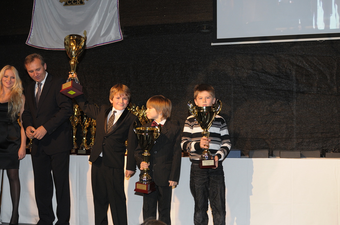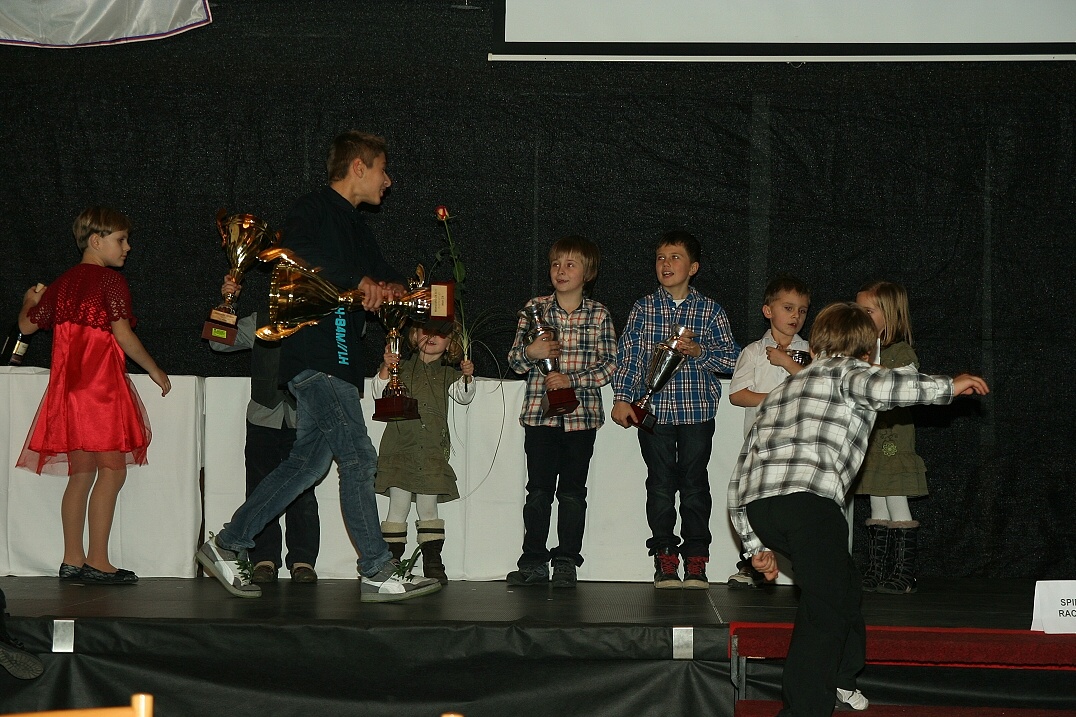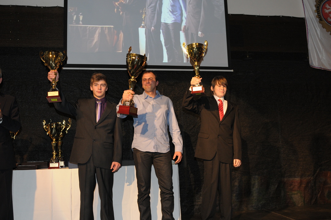 Slavnostní vyhlášení výsledků MČR kartingu 2011 hostilo uplynulý víkend Vysoké Mýto. Místní Autoklub Karosa slavil v letošním roce výročí 50 let pořádání závodů motokár a připravil pěkný společenský večer s bohatýn rautem, vystoupením kouzelníka a bubenickou show. Ceny nejmenším pilotům předával úspěšný automobilový závodník Michael Vorba – motokárový vicemistr Evropy třídy ICA-J z roku 2001 (těsně před ním tenkrát skončil blonďatý Němec s rovnátkama Sebastian Vettel, kterého budete znát ze závodů F1). Druhým předávajícím byl další slavný motokárový jezdec – vicemistr světa KF1 z roku 2008 Libor Toman. Ve třídě EASY 50 (6 až 9 let) byli tradičně vyhlášeni všichni závodníci, v hodnocení EASY 60 – mladí (7 až 9 let) první tři: 1. Jakub Roubíček, 2. Jáchym Galáš, 3. Nela Mičánková. V absolutním pořadí nejpočetnější mistrovské třídy EASY 60 bylo oceněno prvních šest borců: 1. Zdeňek Tlachač, 2. Lukáš Podobský, 3 .Václav Šafář, 4. Jakub Roubíček, 5 .Jakub Talaš, 6. Tomáš Horský. Ceny věnoval vypisovatel projektu EASYKART – italská firma BIREL a český promotér JOKA. Sobotní večer patřil nejen nejlepším motokáristům letošní sezony, ale také těm, kteří jim po celý rok a v každém jednotlivém závodě pomáhali. Dospělí již dnes plánují kde a jaké závody příští rok pojedou, děti se těší na nové souboje se svými kamarády. Akce končila nad ránem improvizovanou zkušební jízdou historické motokáry na náměstí.. Není tedy divu, že nedělní rozjezd do svých domovů byl dámskou jízdou a pánové zaslouženě odpočívali na sedadlech spolujezdce.