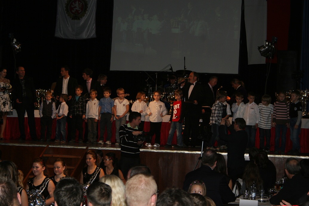Po večeři přišly i chvíle slavnostnější. Společenský večer zahájili svým fantastickým tanečním vystoupením sourozenci Markovi. Tomáš Marek byl ještě před několika lety úspěšným motokárovým závodníkem a dnes patří se svojí sestrou Martinou k absolutní špičce ve sportovních tancích. Ohlédnutí za sezónou tak trochu s nadsázkou a odstupem zprostředkoval sestřih záběrů z letošního roku (můžete si prohlédnout výše). Z dalšího průběhu večera zmíníme ještě povedené vystoupení Freddie Mercuryho v podání Václava Šafáře, karaoke show v podání Milana Galáše (s originálem můžete porovnat zde) a Víti Javůrka s doprovodem taneční skupiny UNO (původní interpret bledne závistí zde).